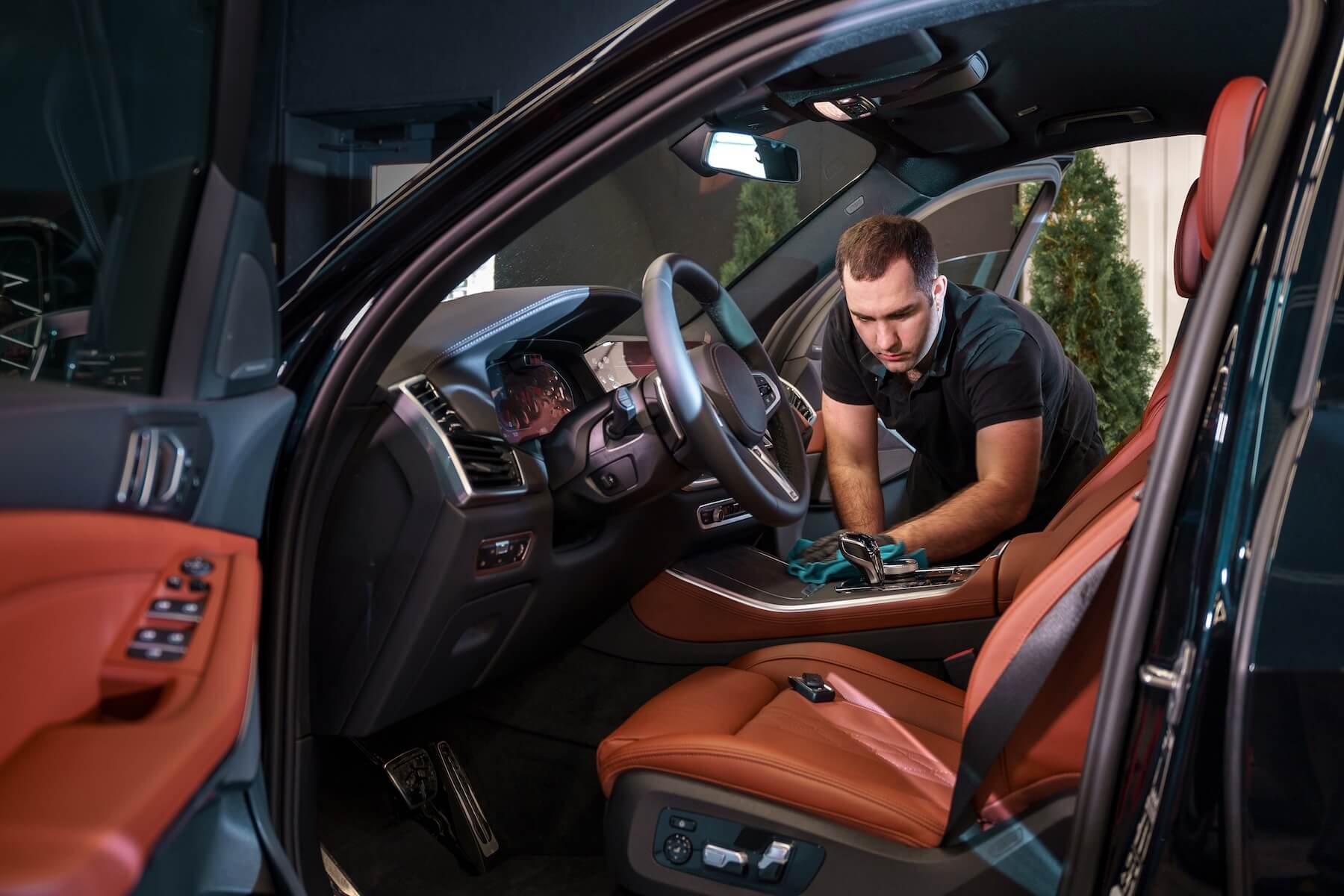 Detailed dry cleaning of dashboard surfaces to eliminate dust and restore shine.